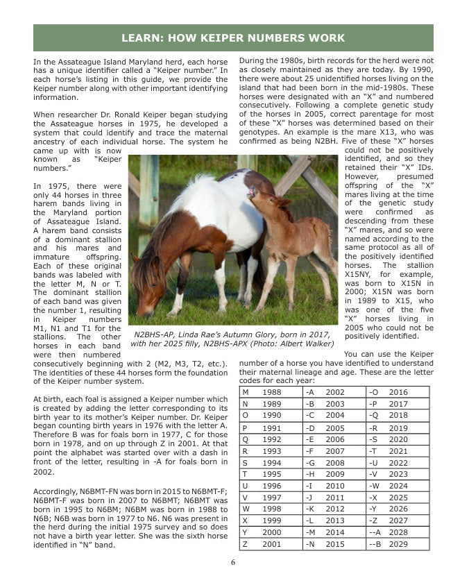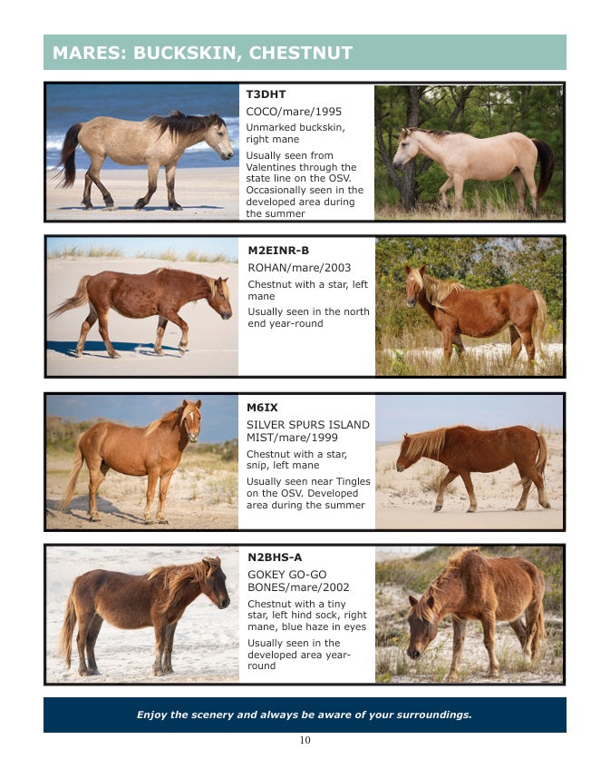 The guide also includes useful information and best practices to keep yourself and the horses safe while visiting the island and observing their natural and wild behaviors. New this year, we've added a few surprise fun pages toward the end to engage the young and young at heart in their quest to discover the fascinating herd of Maryland horses. The guide will be updated annually to add each year's new foals, and to say good-bye the horses who have passed.